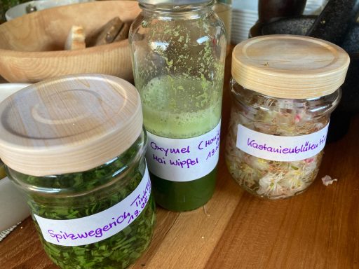 Bei jedem Workshop bereiten wir im Anschluß an die Kräuterwanderung etwas Leckeres zum Direktverzehr sowie ein oder zwei Sachen, die jeder mit nach Hause nehmen kann.